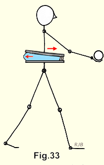 If the 25 pound weight in Figure 33 is replaced by a horizontal force perpendicular to the paper the body might be catching a ball, as in Figure 33. This applies another type of load to the disc, known as a shear load. In this case the top of the disc will tend to slide horizontally past the bottom, both in translation and rotation.
