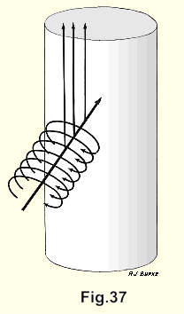 An electric current running along a wire sets up a magnetic field about it, and the stronger the current the stronger the field. If the current varies (as it does in the nuclear lesion, since slight spinal movement is constant) the magnetic field changes in density which will induce currents in circuits lying in the magnetic field. The electric currents run in the opposite direction to the original current (Fig.36).