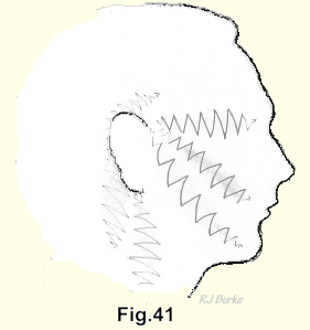 (Fig. 41). The pain may run up to the ear or around the mastoid process. It may radiate into the face. As always in nuclear lesions, the pain, even though it may be excruciating, is diffuse and difficult for the patient to localize. He will pass his whole hand rather vaguely from back to front over his face to indicate the course.